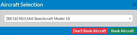If dont want to select your aircraft at this time, click don’t Book Aircraft. Once you find your aircraft, click Book Aircraft. A pop up will appear regardless of what option you chose.