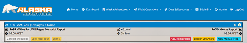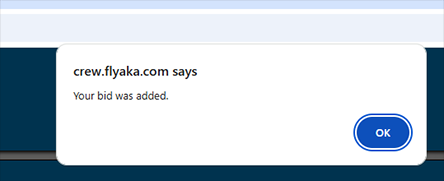 You will automatically be taken to your Bids page. You have successfully placed a tour bid. Load up your ACARS and start fight as normal.